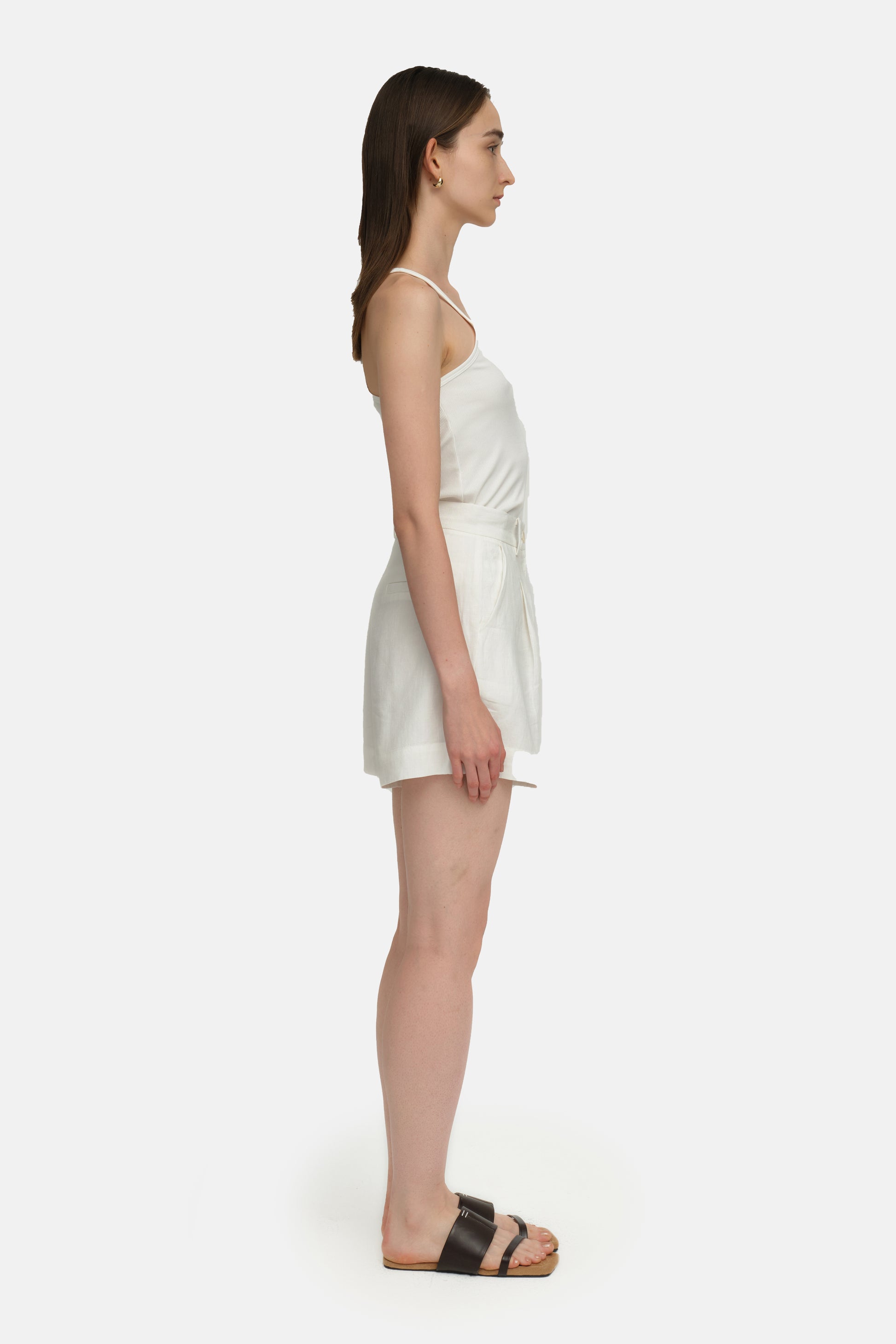 Crafted from a blend of TENCEL and linen, the Coastal Shorts offer a comfortable and stylish option for off-duty wear. Elasticated waist, non-functional button detailing at the centre front, small side splits, and convenient side seam pockets, ideal for a relaxed, versatile look.