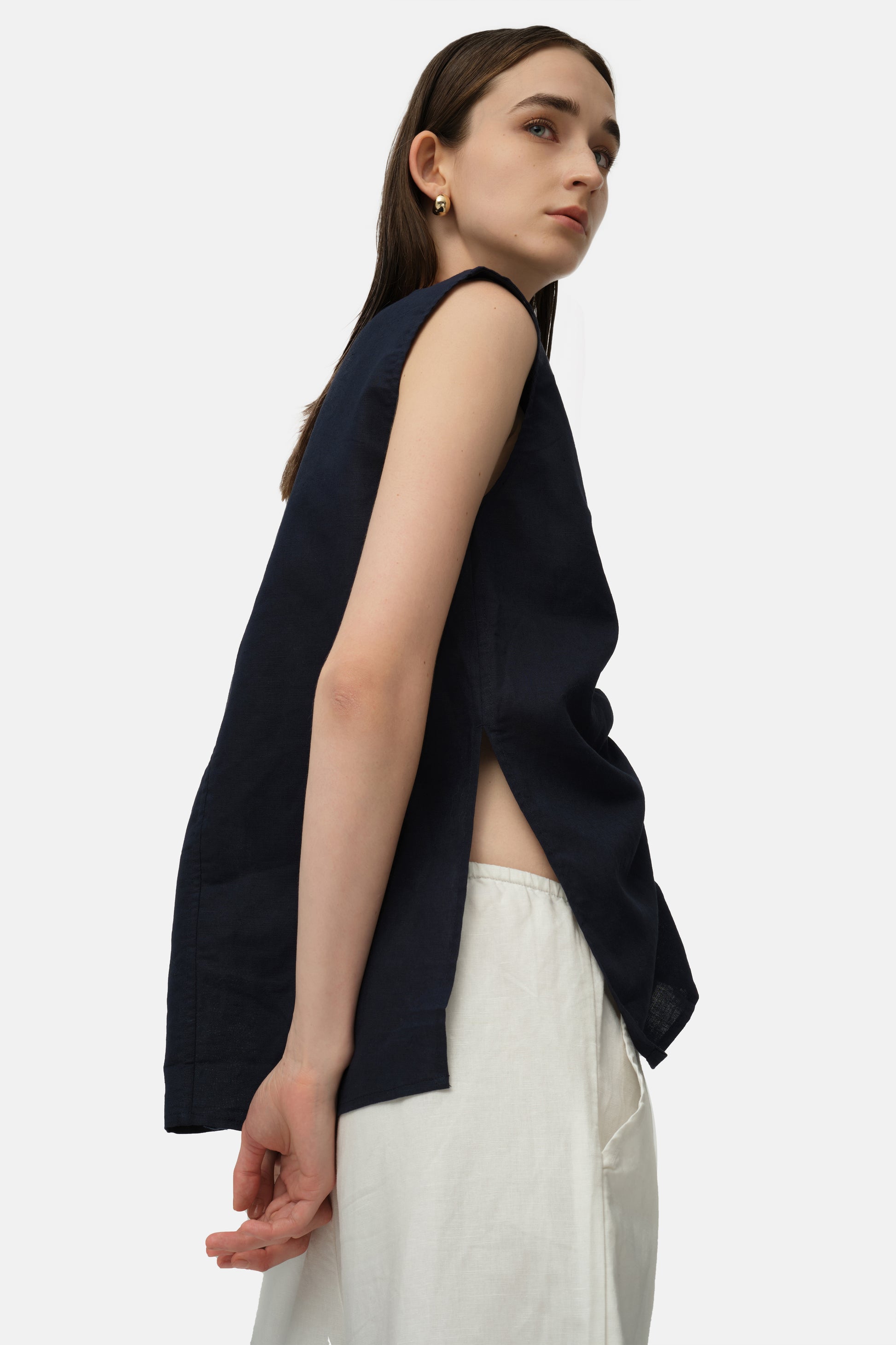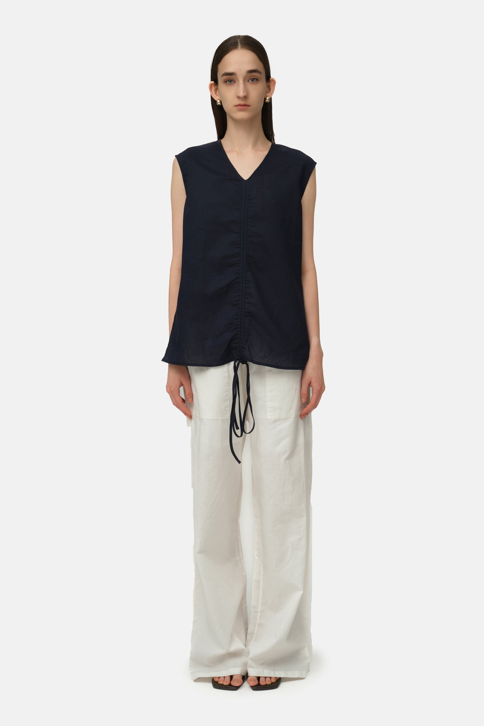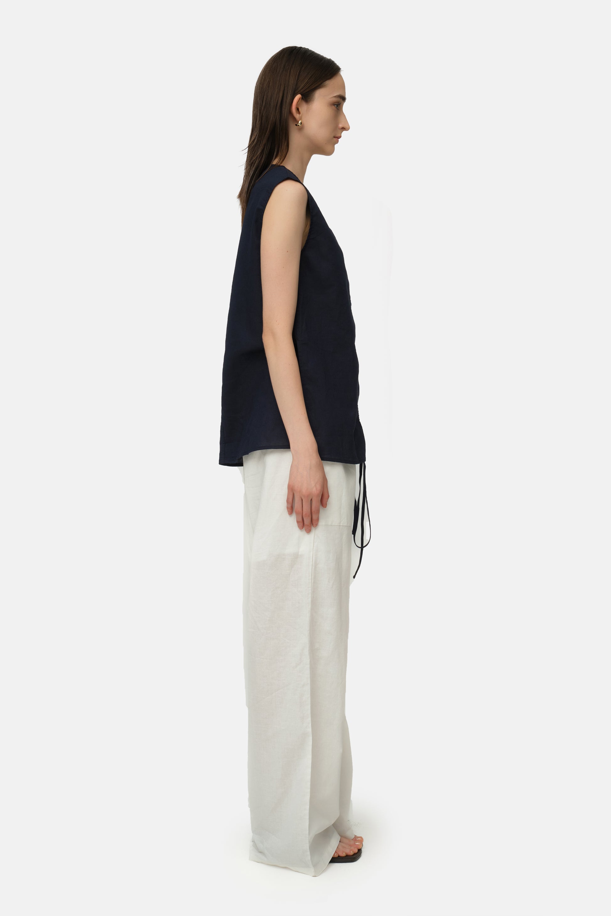Crafted from a signature linen and cotton blend, the Luna Drawstring Top boasts a distinctive drawstring silhouette. Its unique midnight colour adds a touch of sophistication, making this top a standout piece. Perfect for adding a refined and stylish element to any wardrobe.